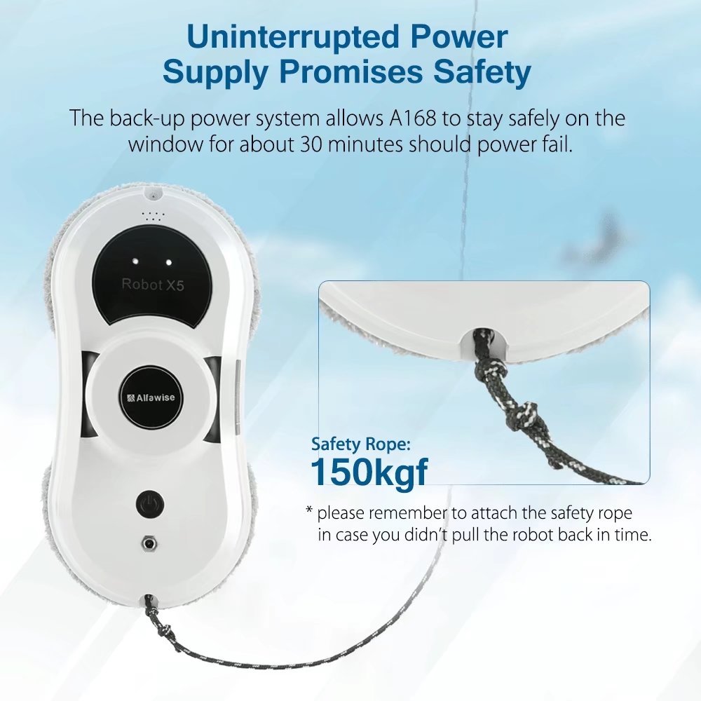 If your live in tall buildings, cleaning window becomes a tough task for you. It's hard and dangerous to clean the dusty window outside by yourselves. Now our brand new window cleaning robot is coming to solve your problems. The microfiber pads effectively scrub the glass surface, remove the oil stain, dirt and dust. So that your window is cleaned up thoroughly and efficiently in a few minutes. With 3 cleaning routes, you can switch by the remote controller. Whether you are looking to clean glass surfaces that have not been cleaned in years or looking to save costs on window cleaning, it is a good helper for you, start your smart life now with Alfawise!